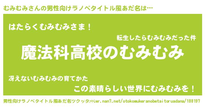 | 女子向けラノベタイトル風あだ名 | 『むみむみアンティーク』 |