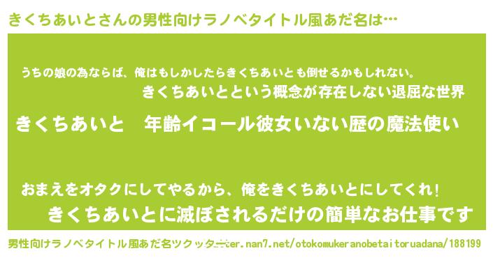 | 女子向けラノベタイトル風あだ名 | 『きくちあいとの玉の輿計画!』 |