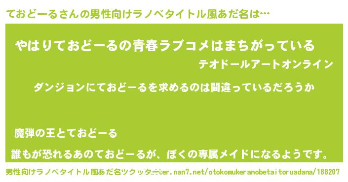| 女子向けラノベタイトル風あだ名 | 『ておどーるは平凡を望む』 |