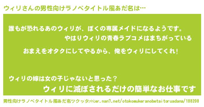 ウィリさんの男性向けラノベタイトル風あだ名をツクッター!
