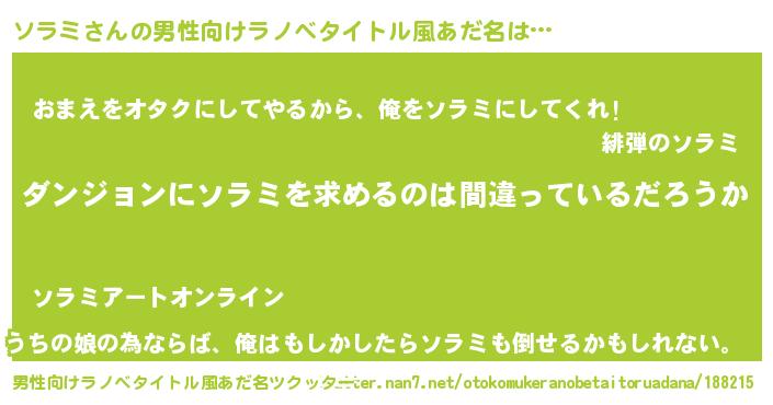 | 恥ずかしいあだ名 | 『ソラリンリン』『ボンバーヘッドソラ』 |