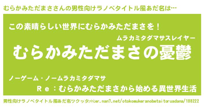 | 胡散臭い通販商品みたいなあだ名 | 『モテモテ間違いなし水晶球…その名も「むらかみただまさ」』 |
