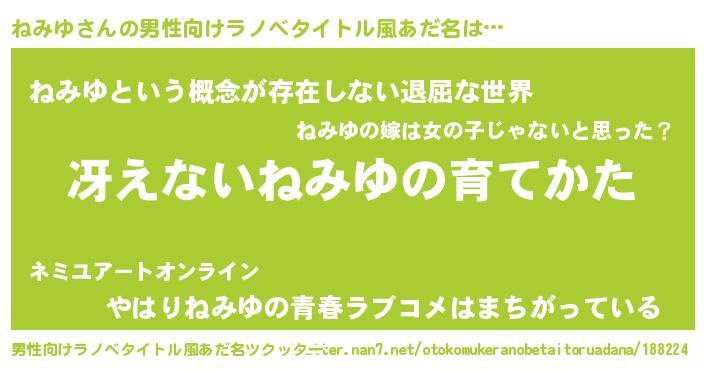 | 意味不明あだ名 | 『永久保存ねみゆ』『ねみゆフォーエバー』 |