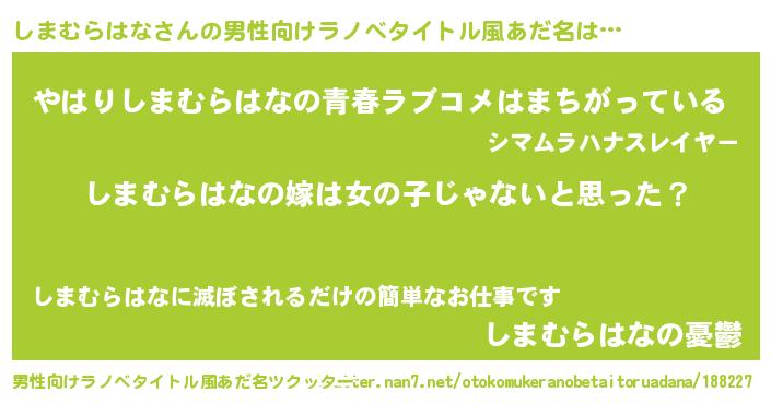| 女子向けラノベタイトル風あだ名 | 『しまむらはな様がみてる』 |