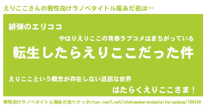 | 伝説のあだ名 | 『最古の陰陽師えりここ』 |