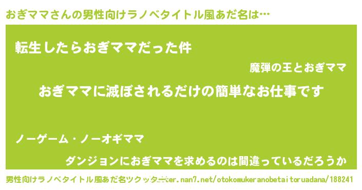 | 胡散臭い通販商品みたいなあだ名 | 『全米が絶賛したサプリメント…その名も「おぎママ」』 |