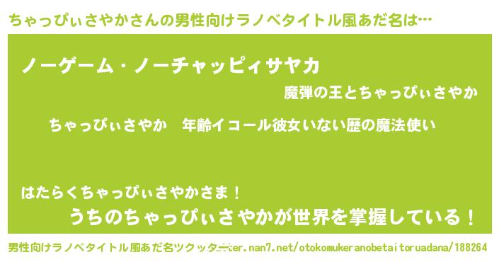 | 女子向けラノベタイトル風あだ名 | 『ちゃっぴぃさやかの玉の輿計画!』 |