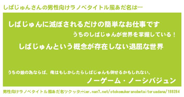 | 女子向けラノベタイトル風あだ名 | 『異世界で失敗しない100のしばじゅん』 |