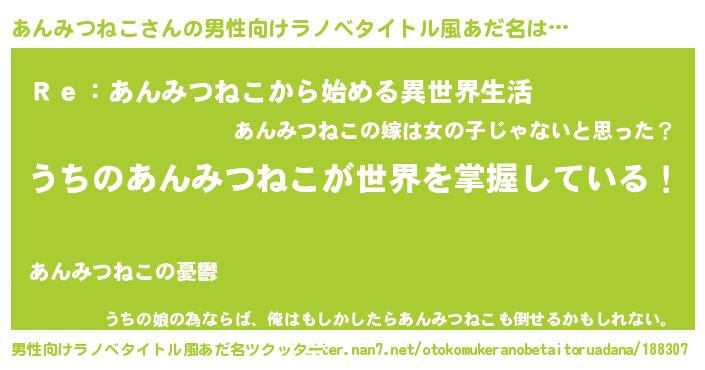 | 意味不明あだ名 | 『自称あんみつねこ』 |