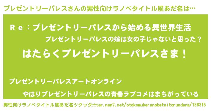| 女子向けラノベタイトル風あだ名 | 『首の姫と首なしプレゼントリーパレス』 |