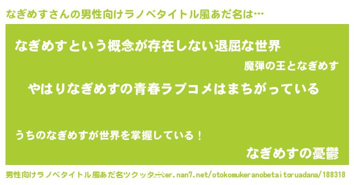 | 意味不明あだ名 | 『なぎめすフォーエバー』 |