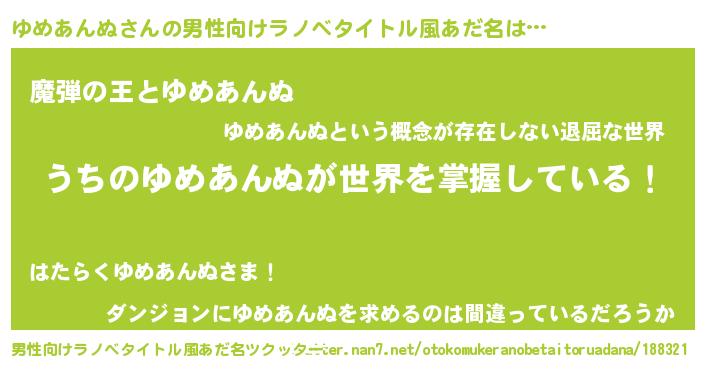 | 意味不明あだ名 | 『住所不定無職ゆめあんぬ(84歳)』 |