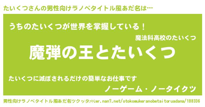 | ヒーロー風カッコイイあだ名 | 『仮面タイダー』『慈愛の使者たいくつ』 |