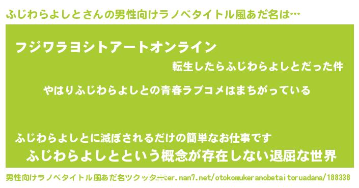 | ファンタジー風あだ名 | 『エターナルフジワラヨシトー』 |