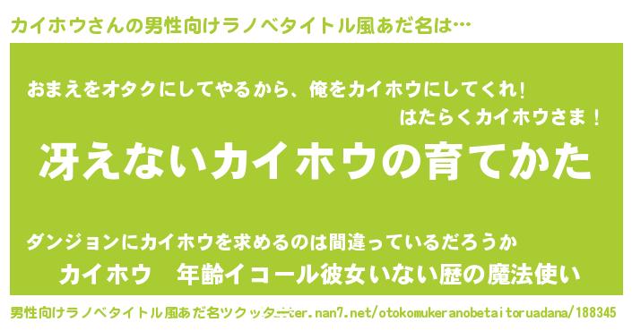 | ヒーロー風カッコイイあだ名 | 『愛の使者カイホウ』『暗黒騎士カイ』 |