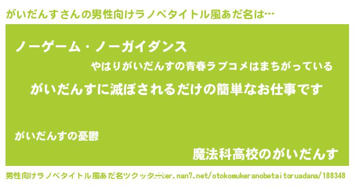 | 意味不明あだ名 | 『眠気覚ましガムがいだんす味』 |