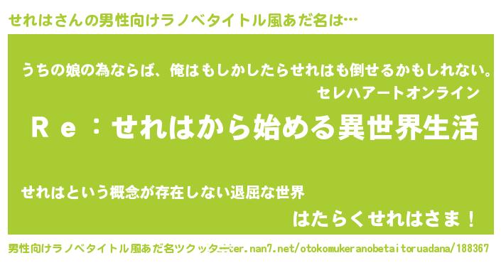 | 意味不明あだ名 | 『自称せれは』『せれはフォーエバー』 |