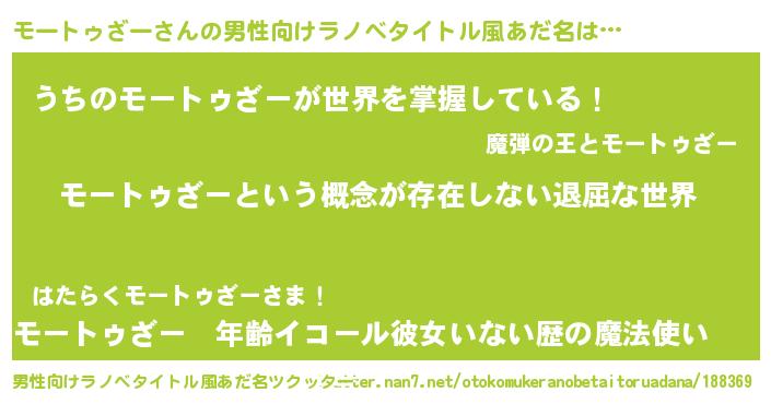 | 胡散臭い通販商品みたいなあだ名 | 『絶対に幸福をもたらす健康食品…その名も「モートゥざー」』 |