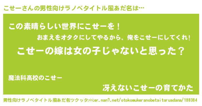 | 女子向けラノベタイトル風あだ名 | 『こせー様がみてる』 |