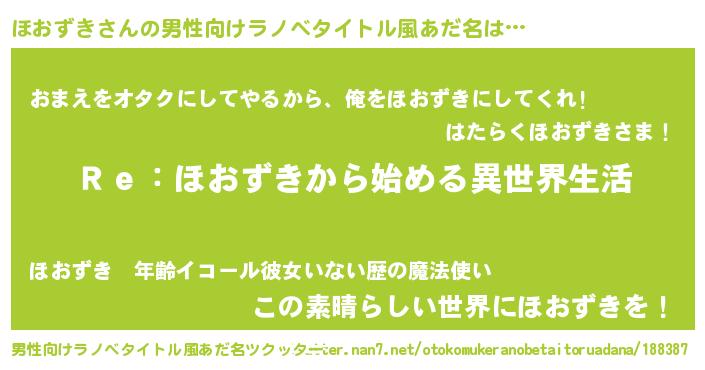 | ヒーロー風カッコイイあだ名 | 『サイバー戦士ホオズキ』『仮面ホオダー』 |