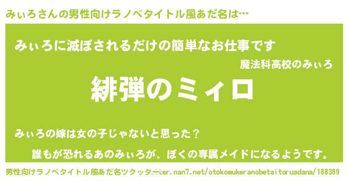 | 意味不明あだ名 | 『永久保存みぃろ』『自称みぃろ』 |