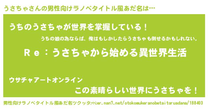 | 胡散臭い通販商品みたいなあだ名 | 『芸能人もオススメする高麗人参…その名も「うさちゃ」』 |