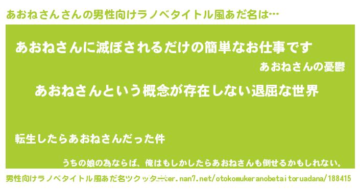 | ヘコむあだ名 | 『あおねさん(笑)』『なまこ酢』 |