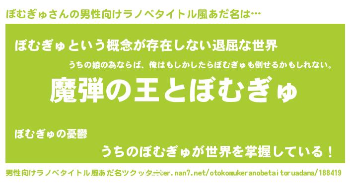 | 意味不明あだ名 | 『住所不定無職ぼむぎゅ(12歳)』 |