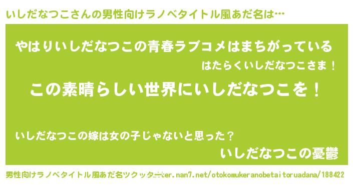 | 胡散臭い通販商品みたいなあだ名 | 『世界中を虜にした100年もののヴィンテージワイン…その名も「いしだなつこ」』 |