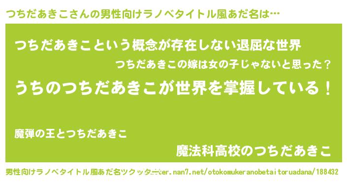 | ヒーロー風カッコイイあだ名 | 『ネオツチダアキコ』『暗黒騎士ツチ』 |