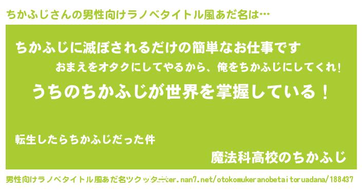 | 意味不明あだ名 | 『自称ちかふじ』『しいたけ科ちかふじ属』 |