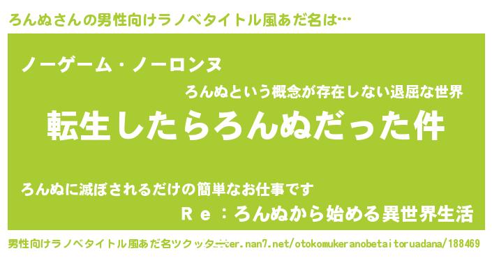 | ヘコむあだ名 | 『ろんぬ(遠い目)』『ろんお』 |