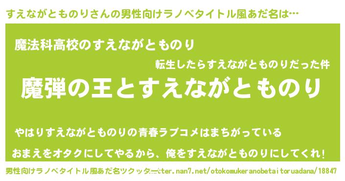 | 女子向けラノベタイトル風あだ名 | 『乙女ゲームの破滅フラグしかない悪役すえながとものりに転生してしまった…』 |