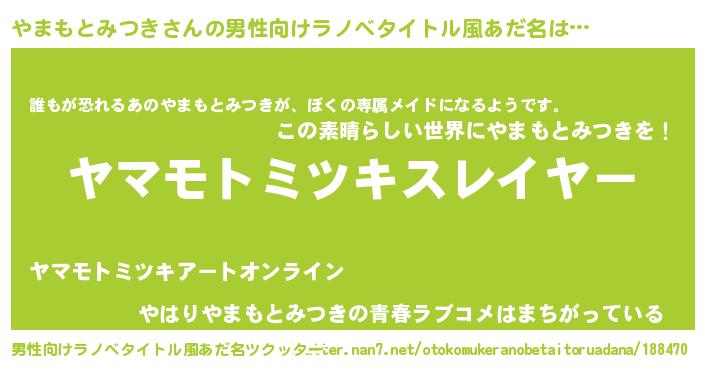 | 胡散臭い通販商品みたいなあだ名 | 『絶対に幸福をもたらす健康食品…その名も「やまもとみつき」』 |