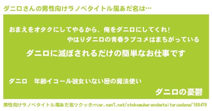 | 胡散臭い通販商品みたいなあだ名 | 『お金では代えられないイリジウム磁石…その名も「ダニロ」』 |