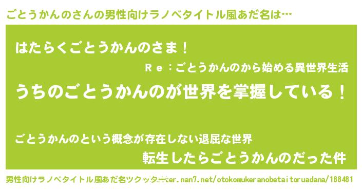 | 女子向けラノベタイトル風あだ名 | 『男装ごとうかんのの憂鬱な任務』 |