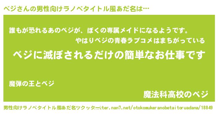 | 女子向けラノベタイトル風あだ名 | 『横柄ベジと宰相陛下』『ベジの契約王妃』 |