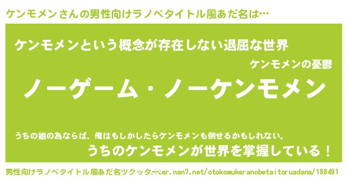 | 伝説のあだ名 | 『救世主となる技術者ケンモメン』 |