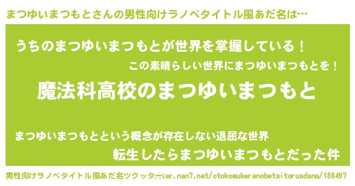 | 意味不明あだ名 | 『自称まつゆいまつもと』 |