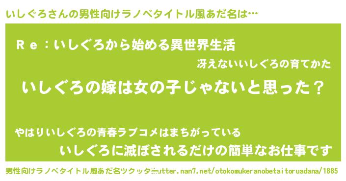| 女子向けラノベタイトル風あだ名 | 『いしぐろの卵を拾いまして』 |