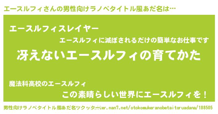 | ヘコむあだ名 | 『エースルフィ(震え声)』『エーふぇ~』 |