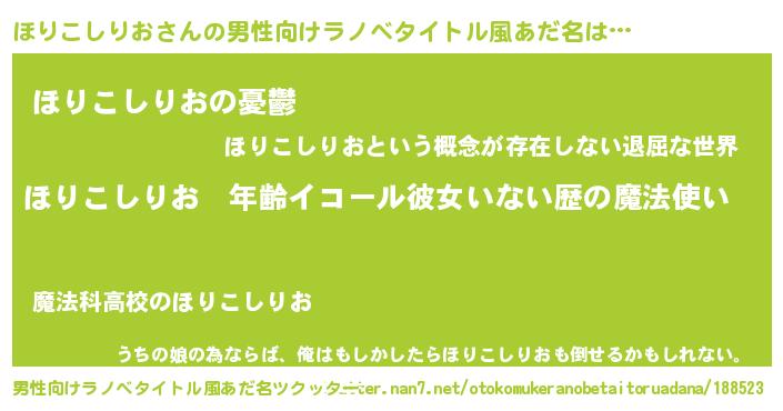 | 女子向けラノベタイトル風あだ名 | 『ほりこしりおの玉の輿計画!』 |