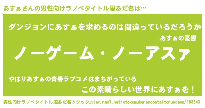 | 伝説のあだ名 | 『救世主となる占い師あすぁ』 |