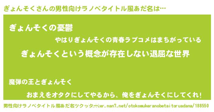 | 意味不明あだ名 | 『永久保存ぎょんそく』 |