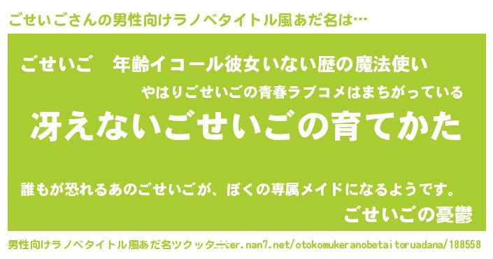 | ヘコむあだ名 | 『ごせふぇ~』『酢こんぶ』『ごせお』 |