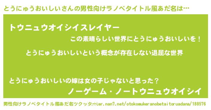 | 意味不明あだ名 | 『永久保存とうにゅうおいしい』 |