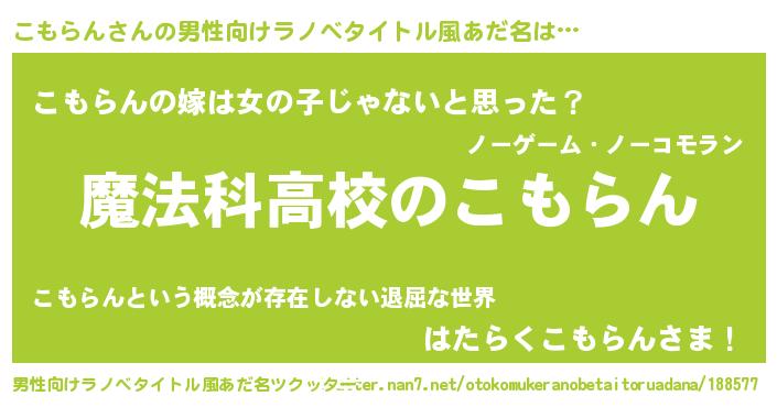 | 意味不明あだ名 | 『自称こもらん』『永久保存こもらん』 |