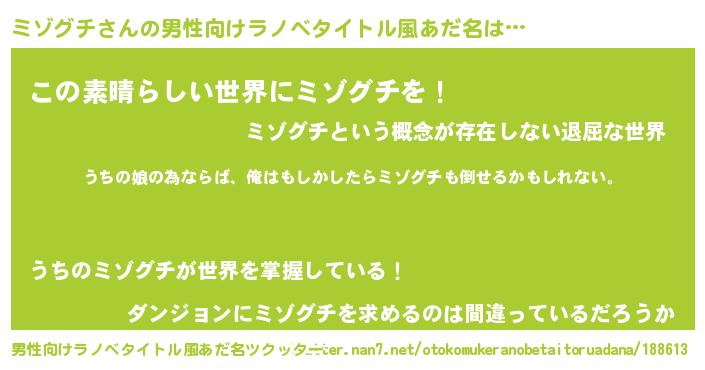 | ヘコむあだ名 | 『なまこ酢』『ミゾを』『ミゾにー』 |