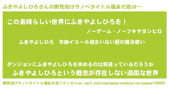 | ヘコむあだ名 | 『ふきやよしひろ(爆)』『ふきぷりん』 |