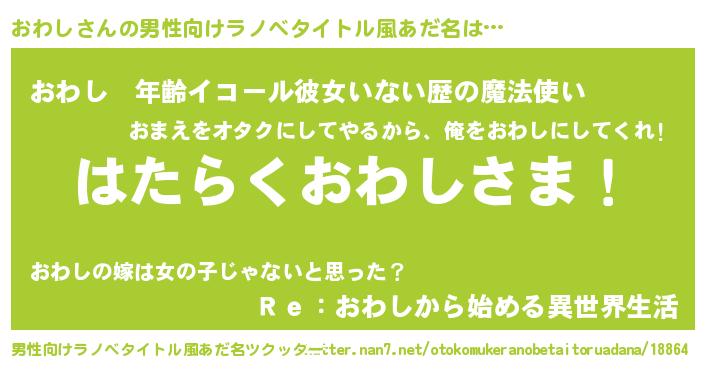 | ヒーロー風カッコイイあだ名 | 『サイバー戦士オワシ』『天弓騎士オワ』 |
